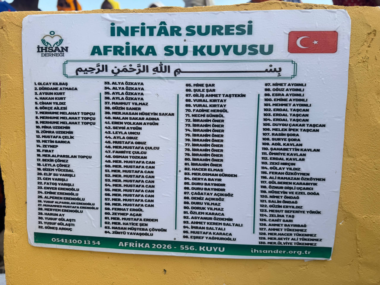 İhsan Derneği olarak, "İyilik paylaştıkça çoğalır" inancıyla Afrika’daki insani yardım faaliyetlerimize bir yenisini daha ekledik. Siz kıymetli hayırseverlerimizin bizlere duyduğu güven ve teslim ettiği emanetler doğrultusunda, Çad’ın mahzun bir köyünde İnfitar Suresi Su Kuyusu’nu dualar eşliğinde hizmete açtık.