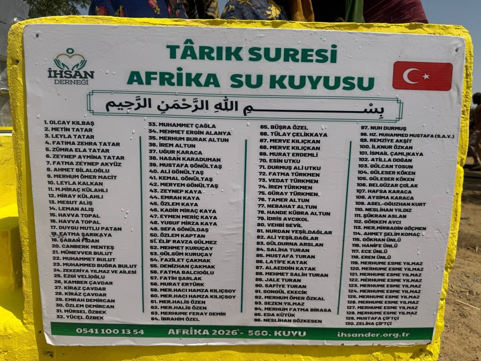 İhsan Derneği olarak, rahmet kapılarının ardına kadar açıldığı mübarek Ramazan ayında, iyiliği yeryüzüne yaymaya devam ediyoruz. Siz kıymetli bağışçılarımızın destekleriyle, Afrika’nın Çad ülkesinde, suya en çok ihtiyaç duyulan köylerden birinde Tarık Suresi Su Kuyusu’nu dualarla hizmete açtık.